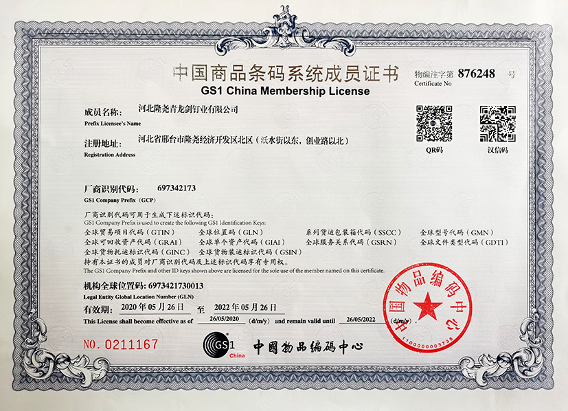 青龍劍釘業(yè)有限公司已成為中國(guó)商品條碼系統(tǒng)成員,從2021年起青龍劍全系產(chǎn)品編入中國(guó)物品條碼系統(tǒng)。自此青龍劍產(chǎn)品實(shí)現(xiàn)了進(jìn)商超、建材自選賣(mài)場(chǎng)、智能分揀倉(cāng)庫(kù)等標(biāo)準(zhǔn)化便捷掃碼進(jìn)出庫(kù)功能。