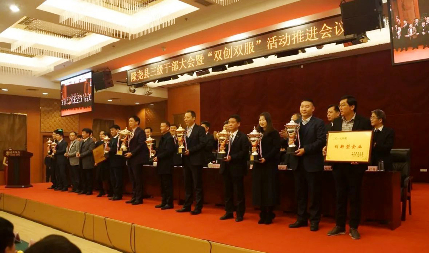 2018年2月27號,青龍劍公司董事長馬志華受邀參加三級干部大會暨“雙創雙服”活動推進會,并榮獲“項目建設功臣”稱號。